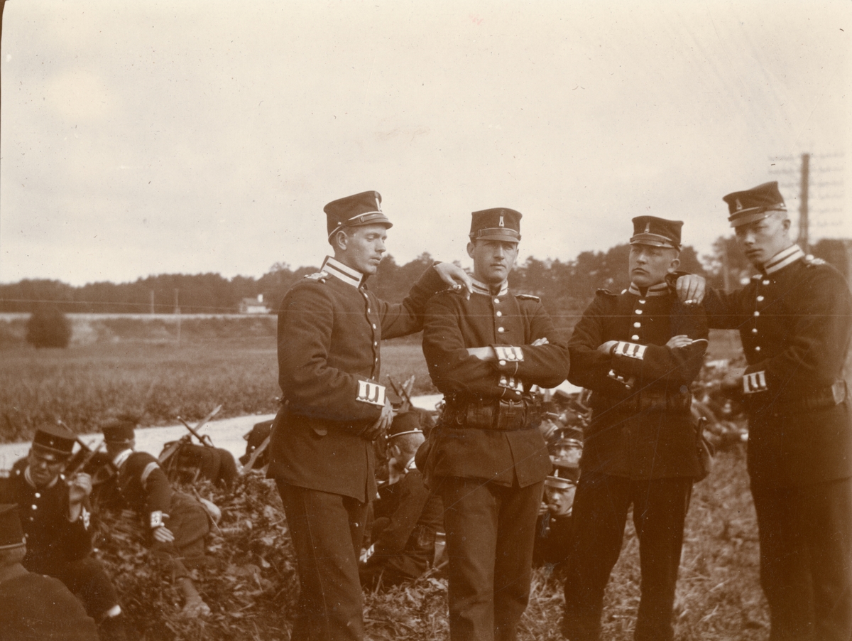 Titel: Soldater vid Göta livgarde I 2 har vilopaus under övning.