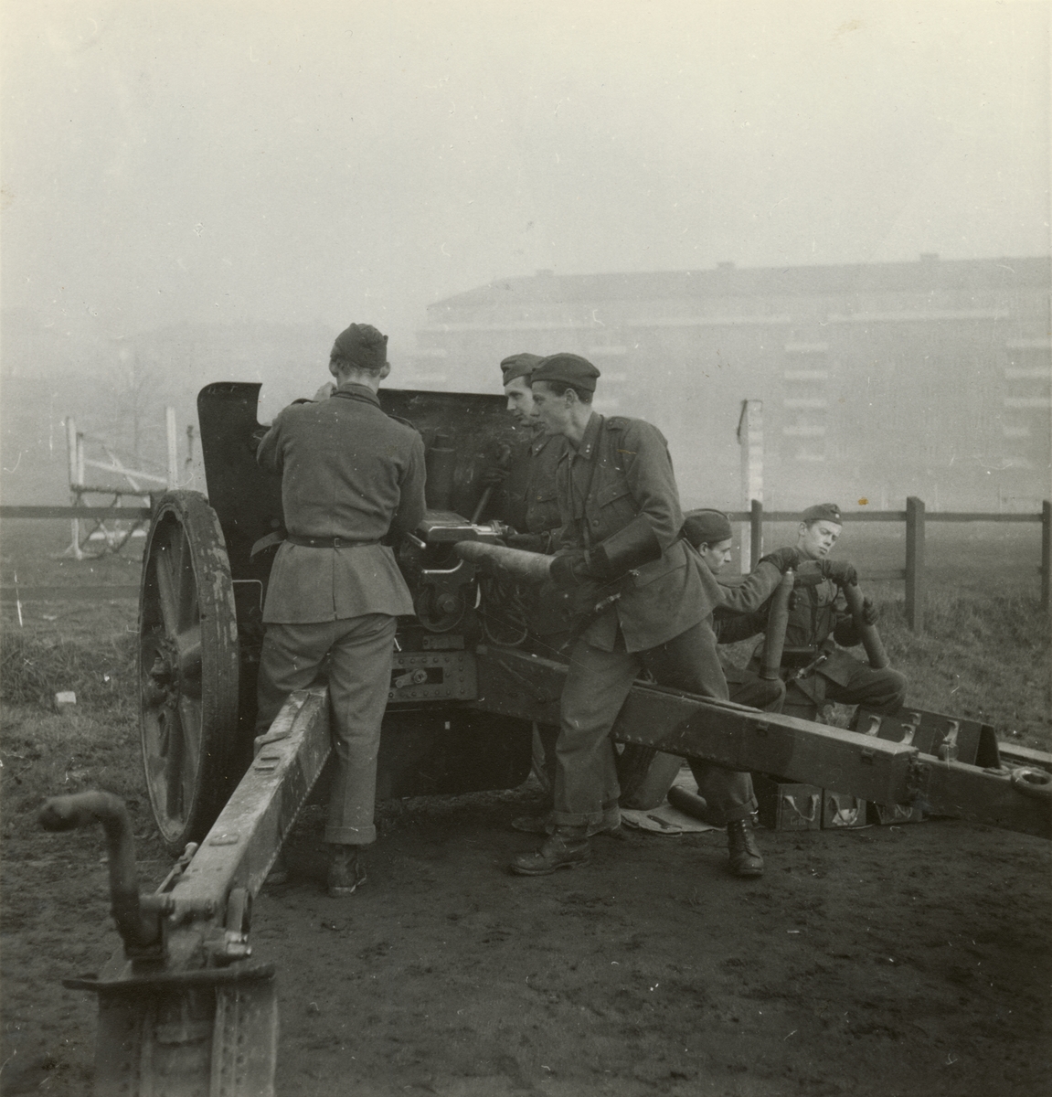 Pjäsexercis med 7,5 cm kanon m/1902-33, Svea artilleriregemente A 1, våren 1947.