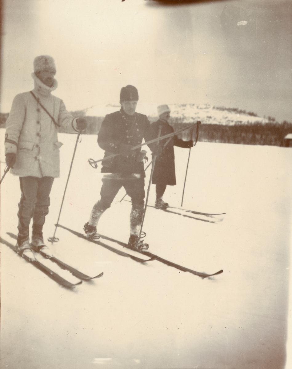 Officerare från Smålands husarregemente K 4 på skidor, vinterövning i Norrbotten omkring 1910.