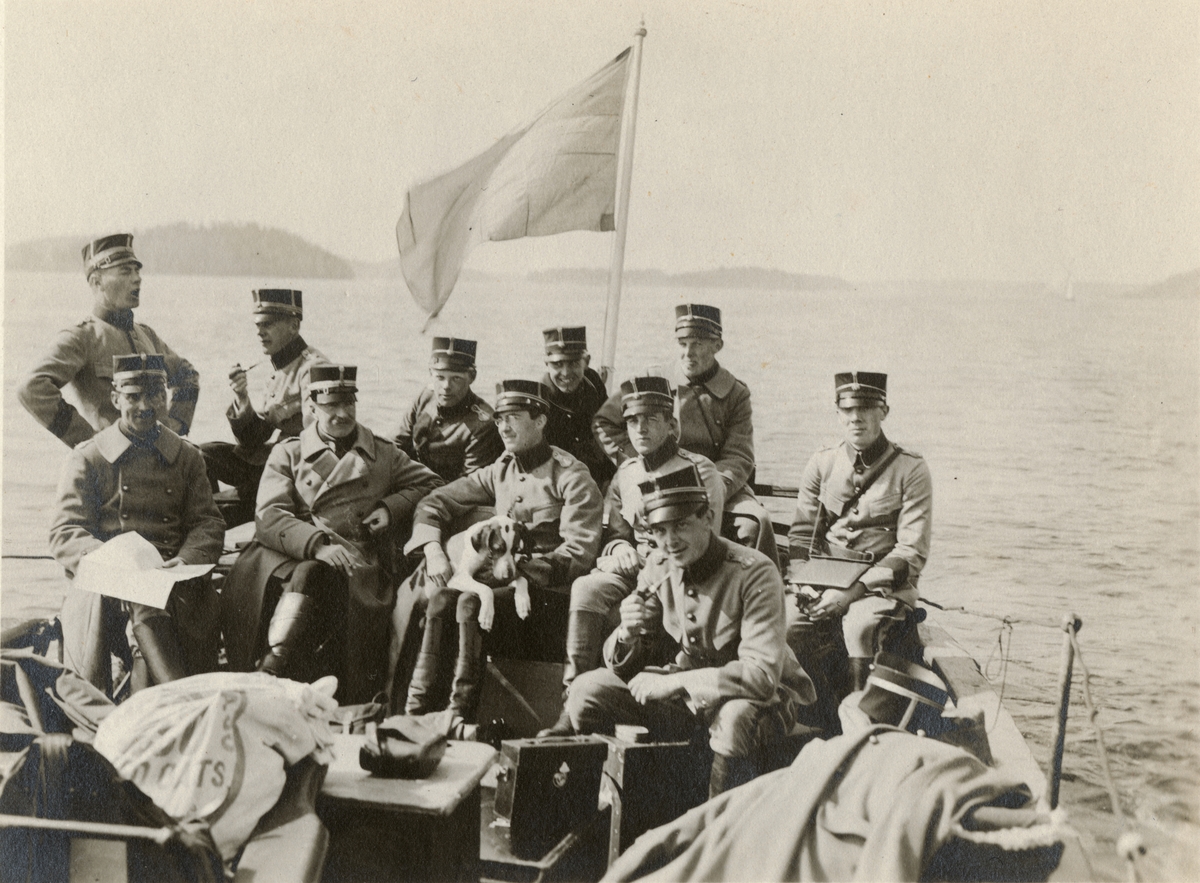 Titel: Text i fotoalbum: "Hem från officers- och underofficersövningarna å Ljusterö 1918."