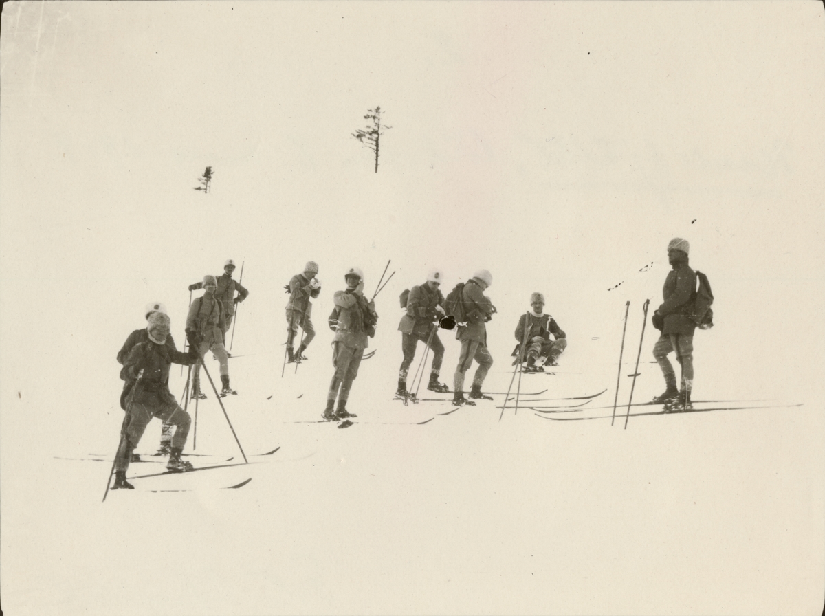 Titel: Text i fotoalbum: "Officersövningarna vid Duved 1919. Vid trädgränsen - uppåt!"