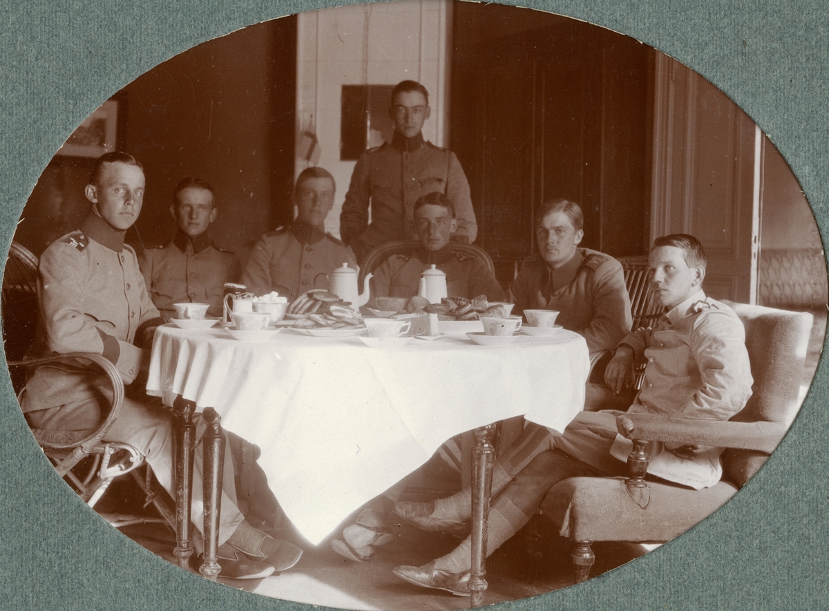 Titel: Gruppbild med soldater från Kronprinsens husarregemente K 7.