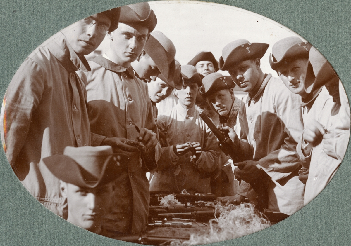Titel: Gruppbild med soldater från Kronprinsens husarregemente K 7.