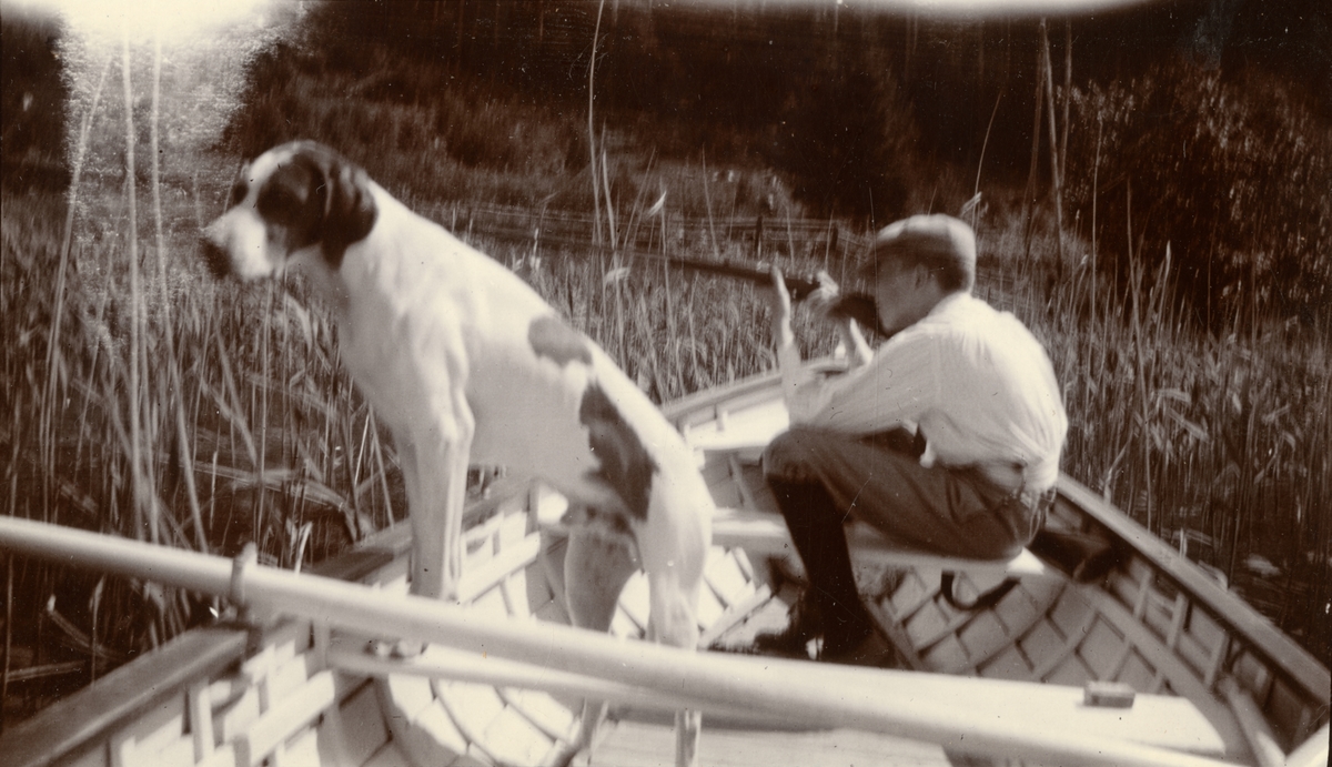 Titel: Hunden Sass och minste husbonden i båten Linnea på Malmsjön.