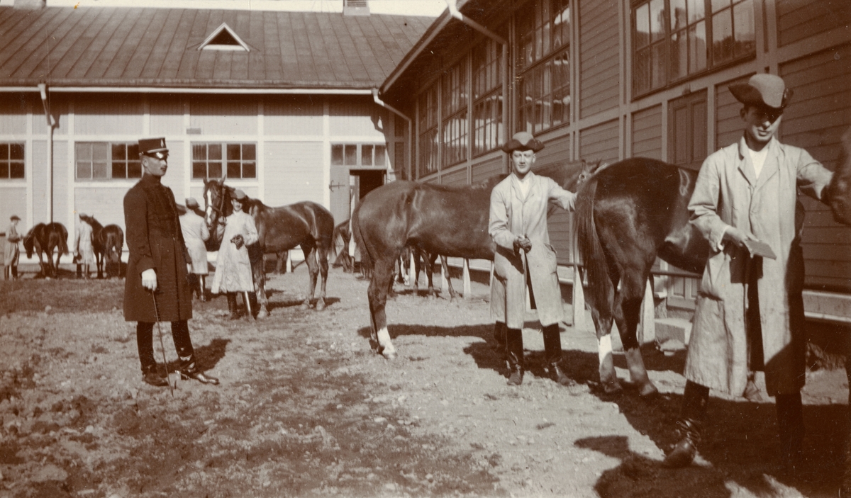 Ryktning av hästar utanför stallet, Kavalleriskolan.