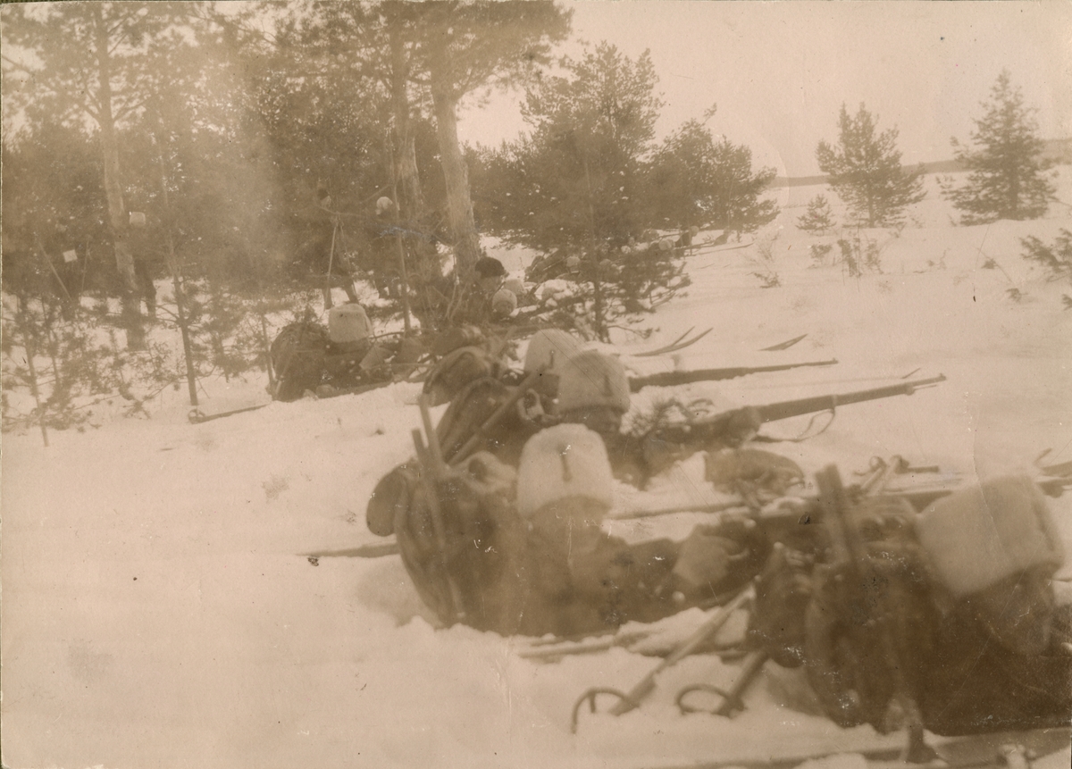 Titel: Text i fotoalbum: "Manöver i trakten af Piteå vintern 1906. Fältskjutning vid Öjebyn."