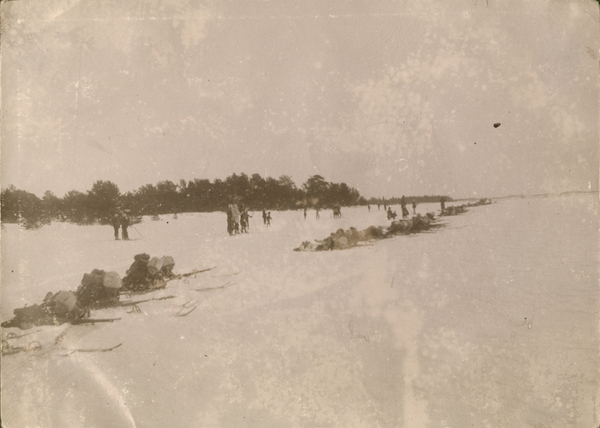 Titel: Text i fotoalbum: "Manöver i trakten af Piteå vintern 1906. Fältskjutning vid Öjebyn."