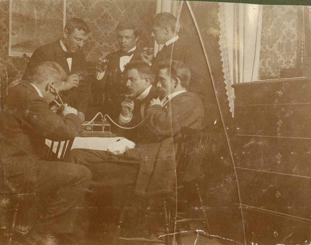 Titel: Text i fotoalbum: "Fonografkonsent och punschdrickning i lyan 1900."