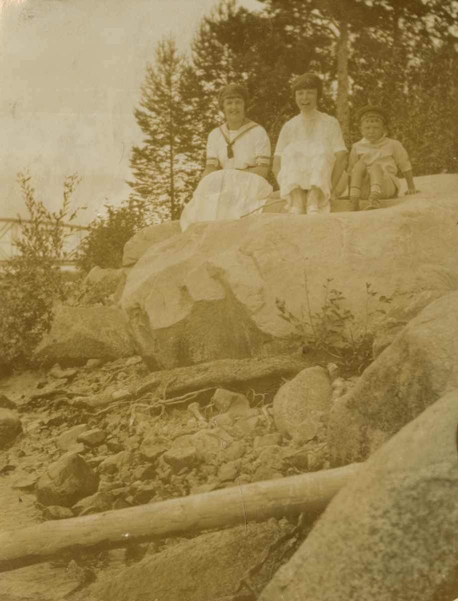 Titel: Barn sittandes på en stor sten.