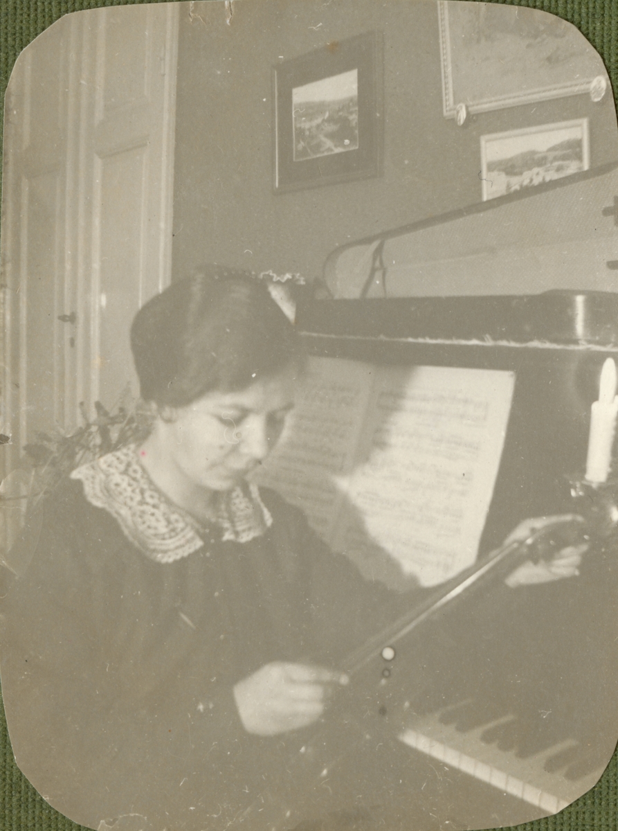 Titel: Porträtt av en kvinna vid piano.