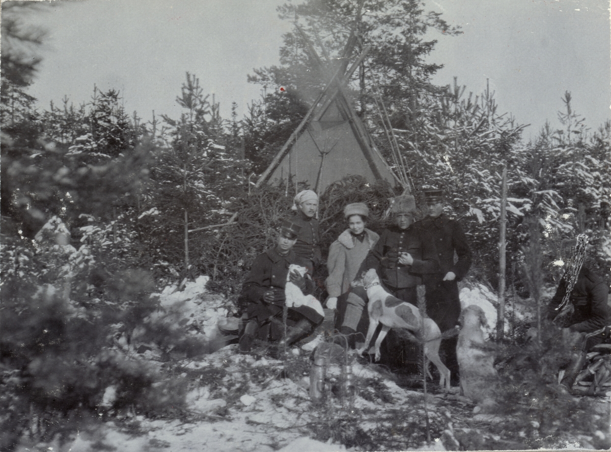 Titel: Gruppbild framför tält.