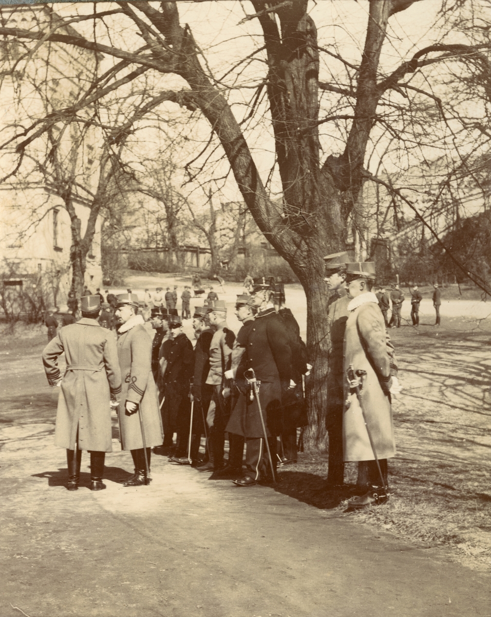 Titel: Officerare i samtal.