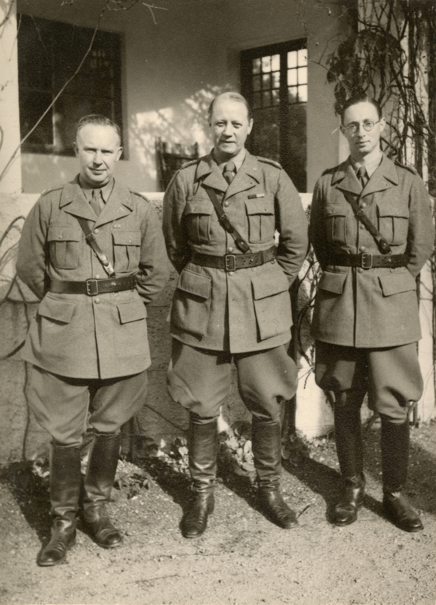 Titel: Text i fotoalbum: "Beredskapstjänst april-okt 1940 vid Fältpost". Gruppbild.