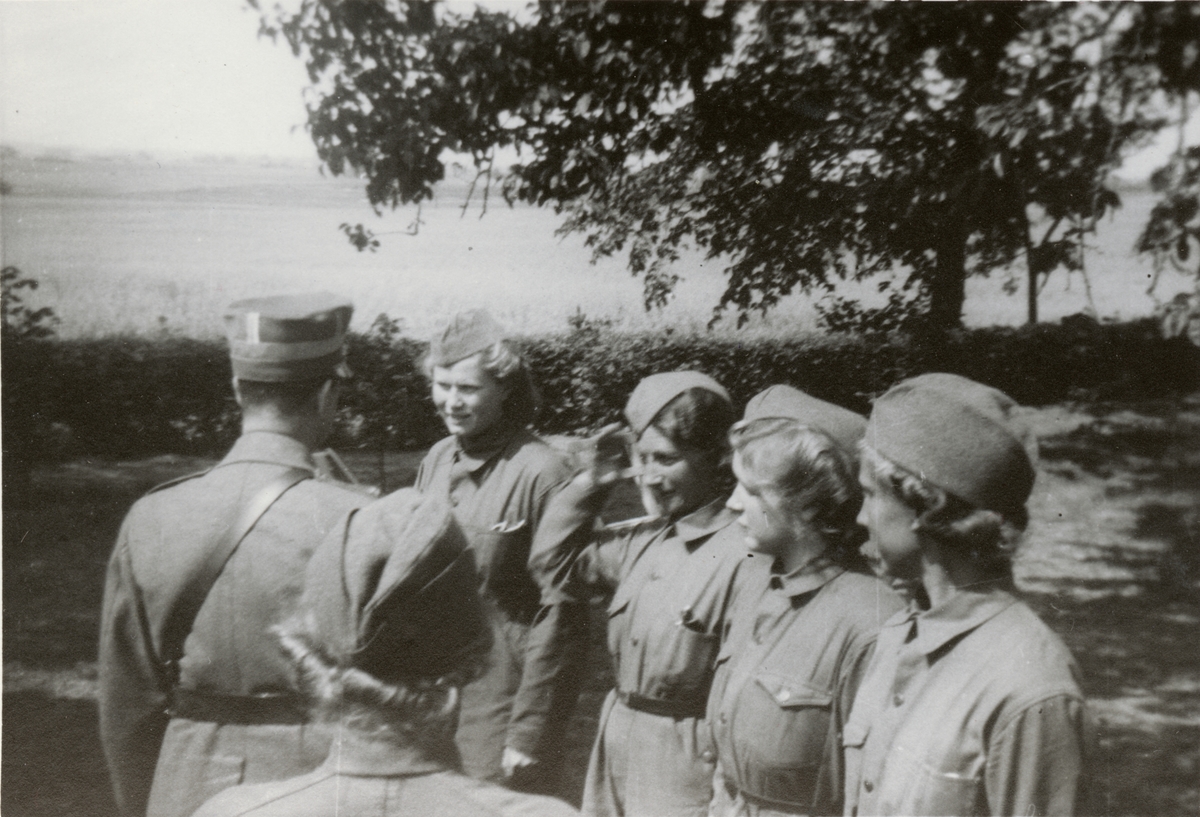 Titel: Text i fotoalbum: "Generalintendentens inspektionsresa. Genint inspekterar kvinligt ls".
