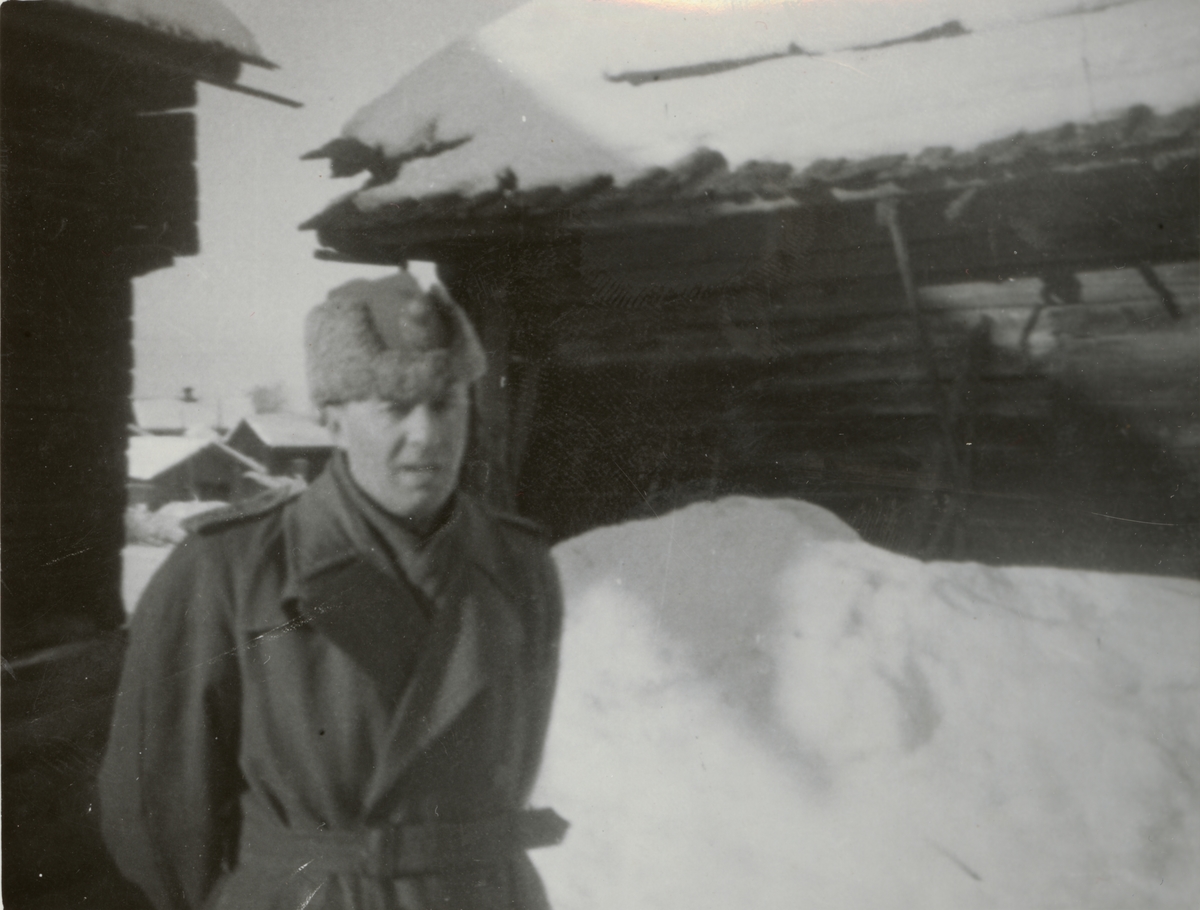 Text i fotoalbum: "Från vinterbefälsövningen 1945 i Dalarna. C-O:s och mitt högkvarter mellan Persborg och Vikarbyn. C-O. Öl. Rangnitt".