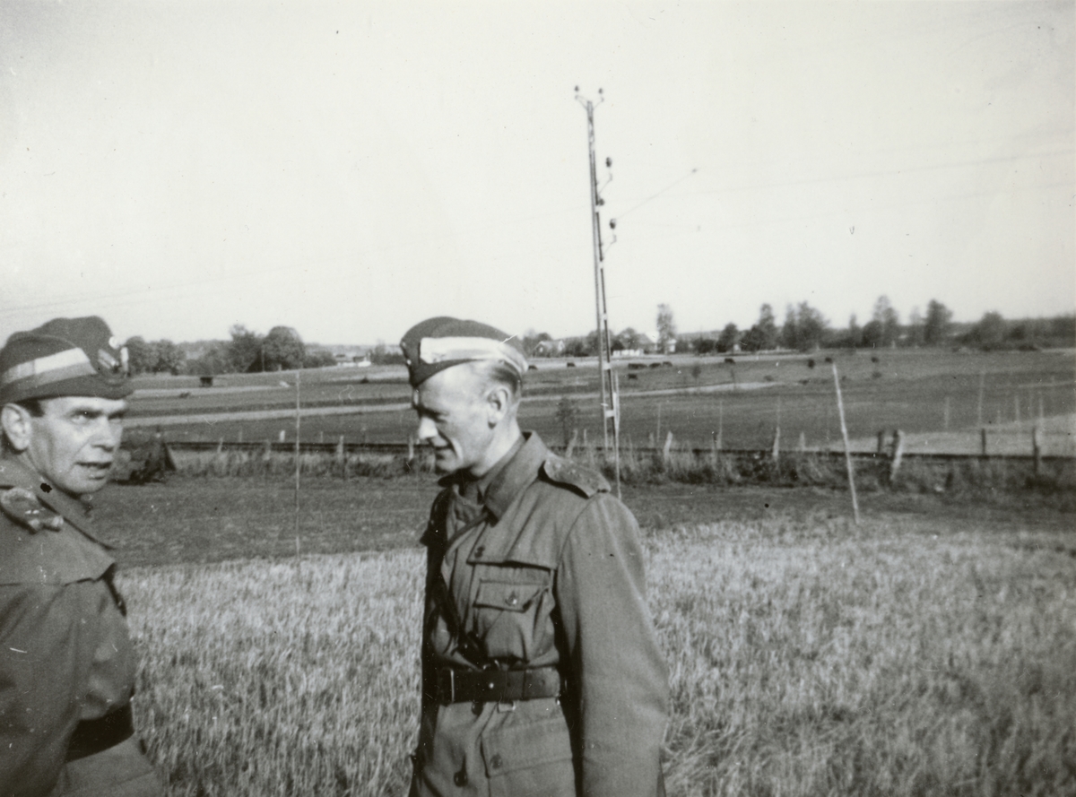 Text i fotoalbum: "Brigfälttjänstövning hösten 1950. Urlastning på linjen i trakten av Fjugesta. Samuelsson, Dahlström".