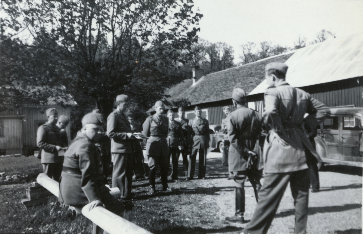 Titel: Text i fotoalbum: "Intfälttjänstövning våren 1951. Jönsson föredrager sin uppgift".