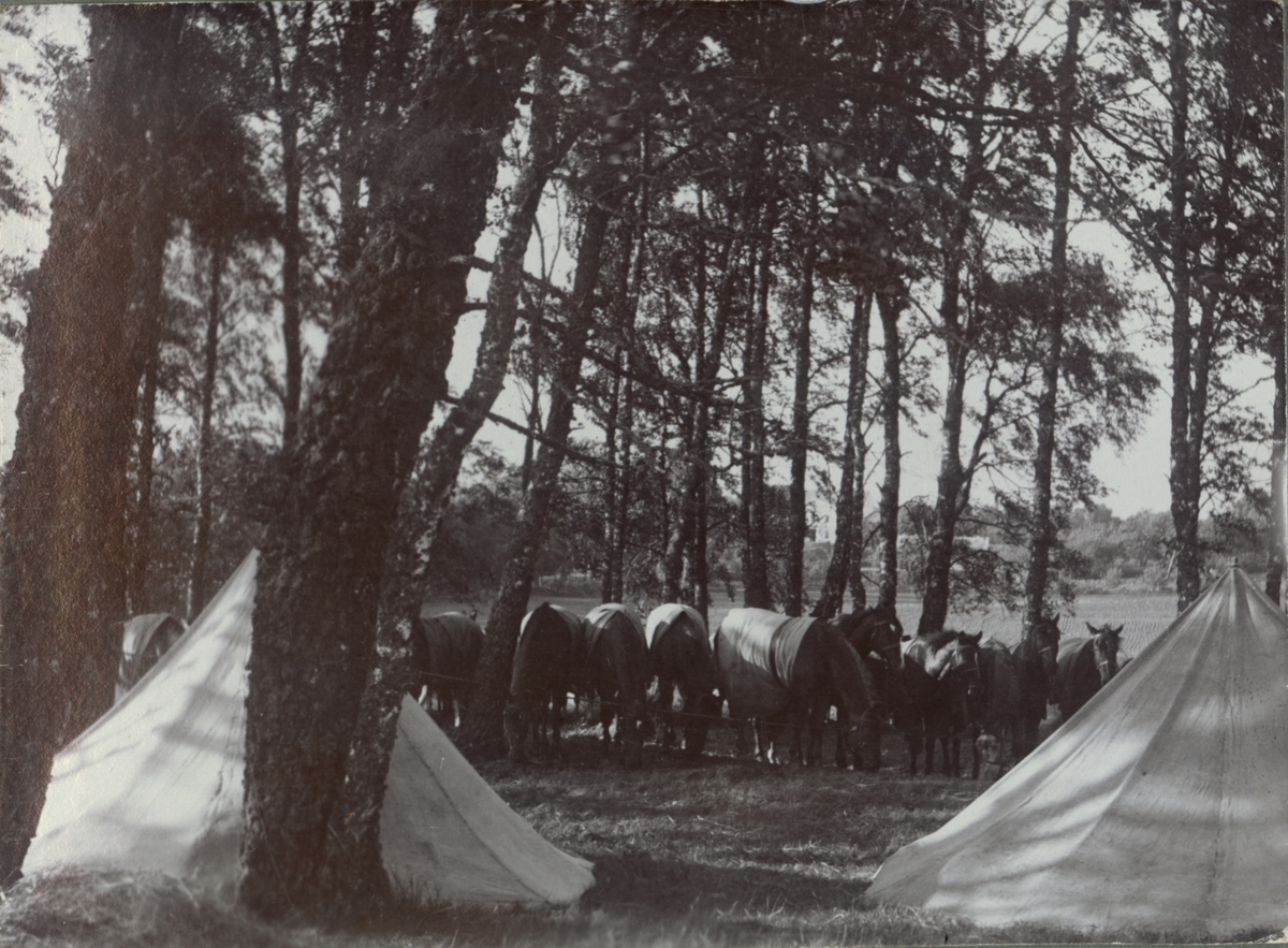 Titel: Text i fotoalbum: "Ränneslätt K 4 Kav. aspirantskola 1900". Tältläger.
