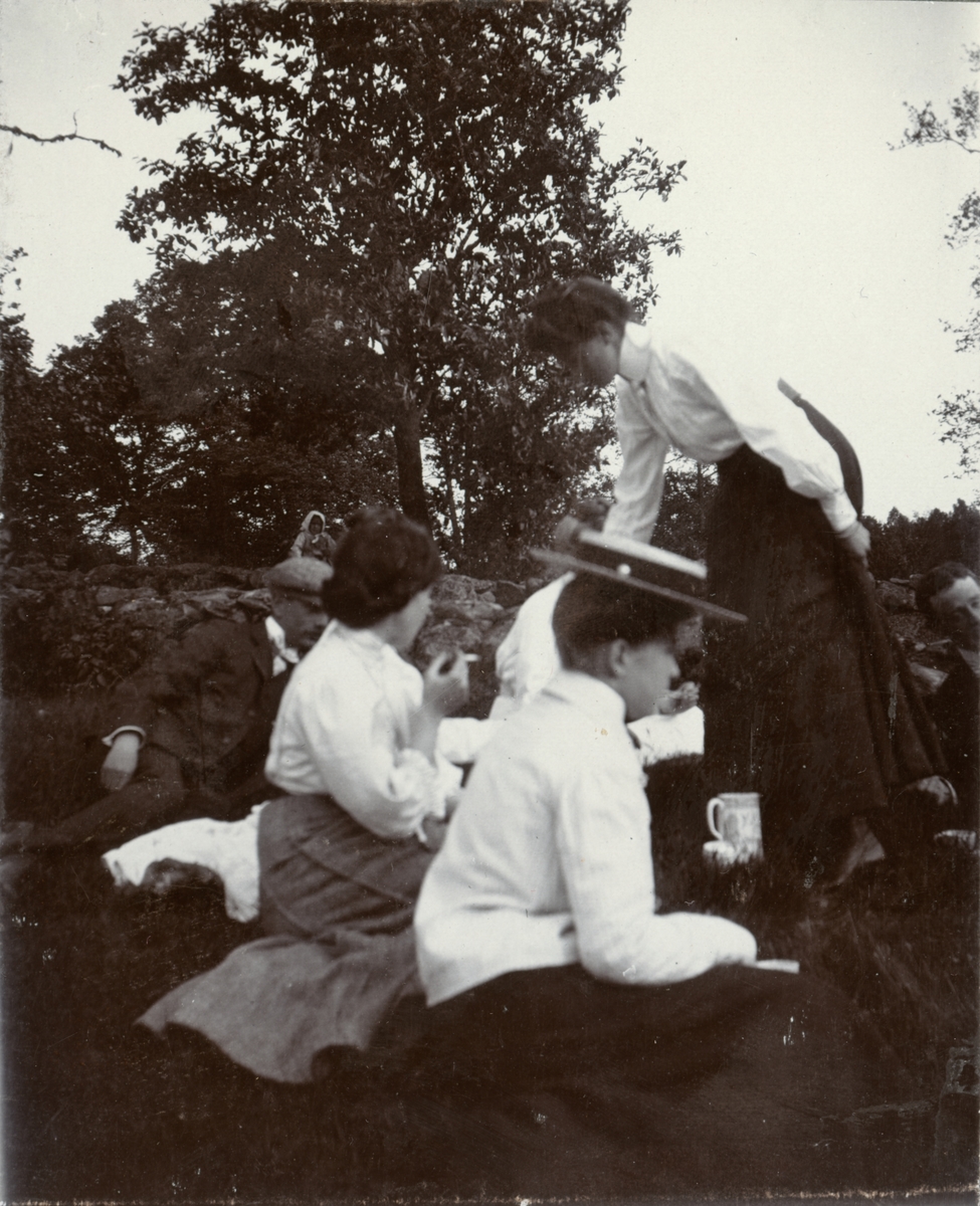 Titel: Text i fotoalbum: "Ränneslätt K 4 Kav. aspirantskola 1900". Gruppbild.
