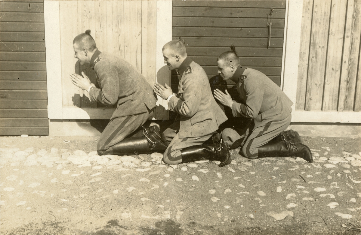 Titel: Soldater framför en byggnad.