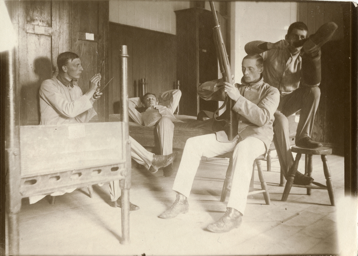 Text i fotoalbum: "Puts. Obs. Thorens i sängen, flit".