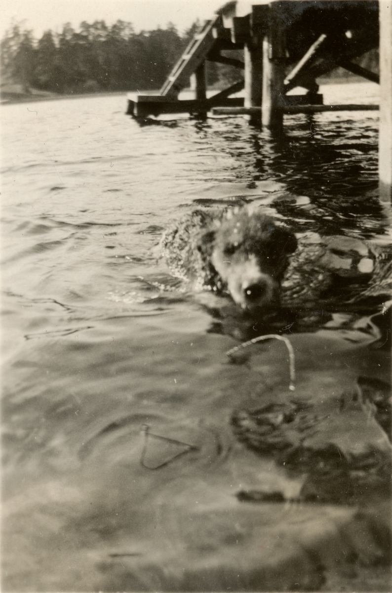 Titel: Text i fotoalbum: "Sommaren 1929. Skolkompaniet. Bell badar."