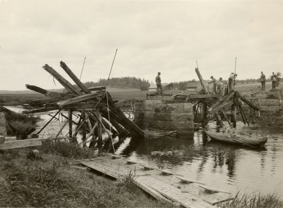Titel: Text i fotoalbum: "Brobygget vid Gripenberg. Gamla bron sprängdes bort."