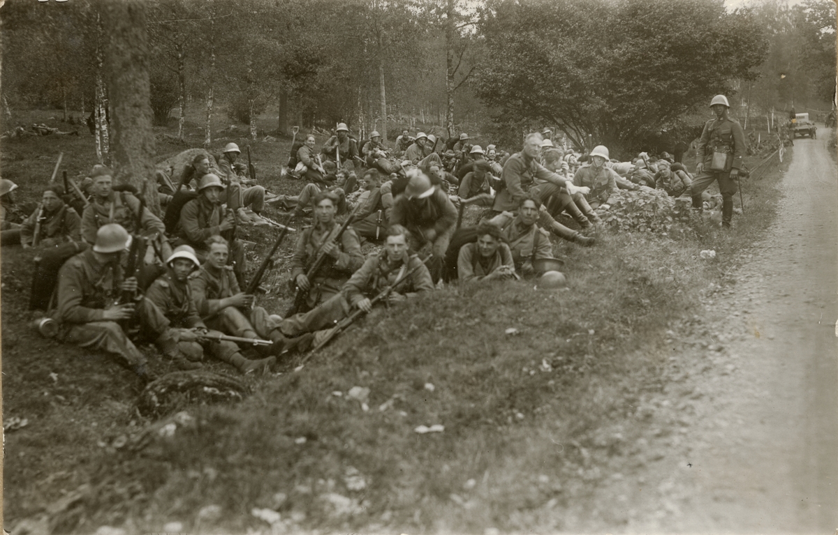 Titel: Text i fotoalbum: "På övningsmarsch med Björling".