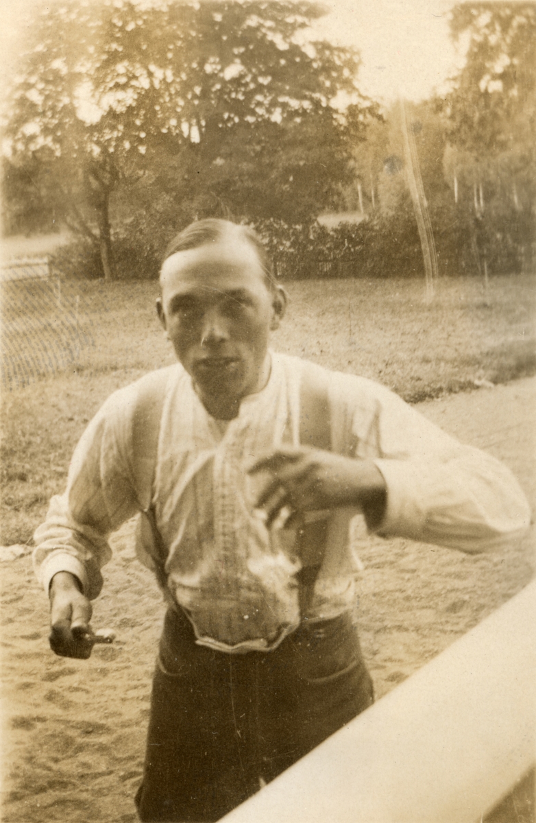 Titel: Text i fotoalbum: "Manöver. Ringström poserar".