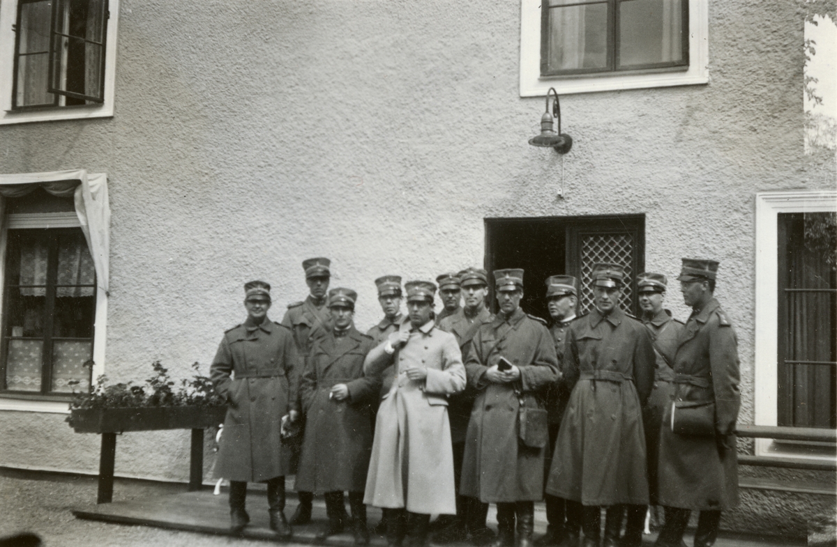 Titel: Text i fotoalbum: "Fältövningen i Trosa. Utanför lyxhotellet".