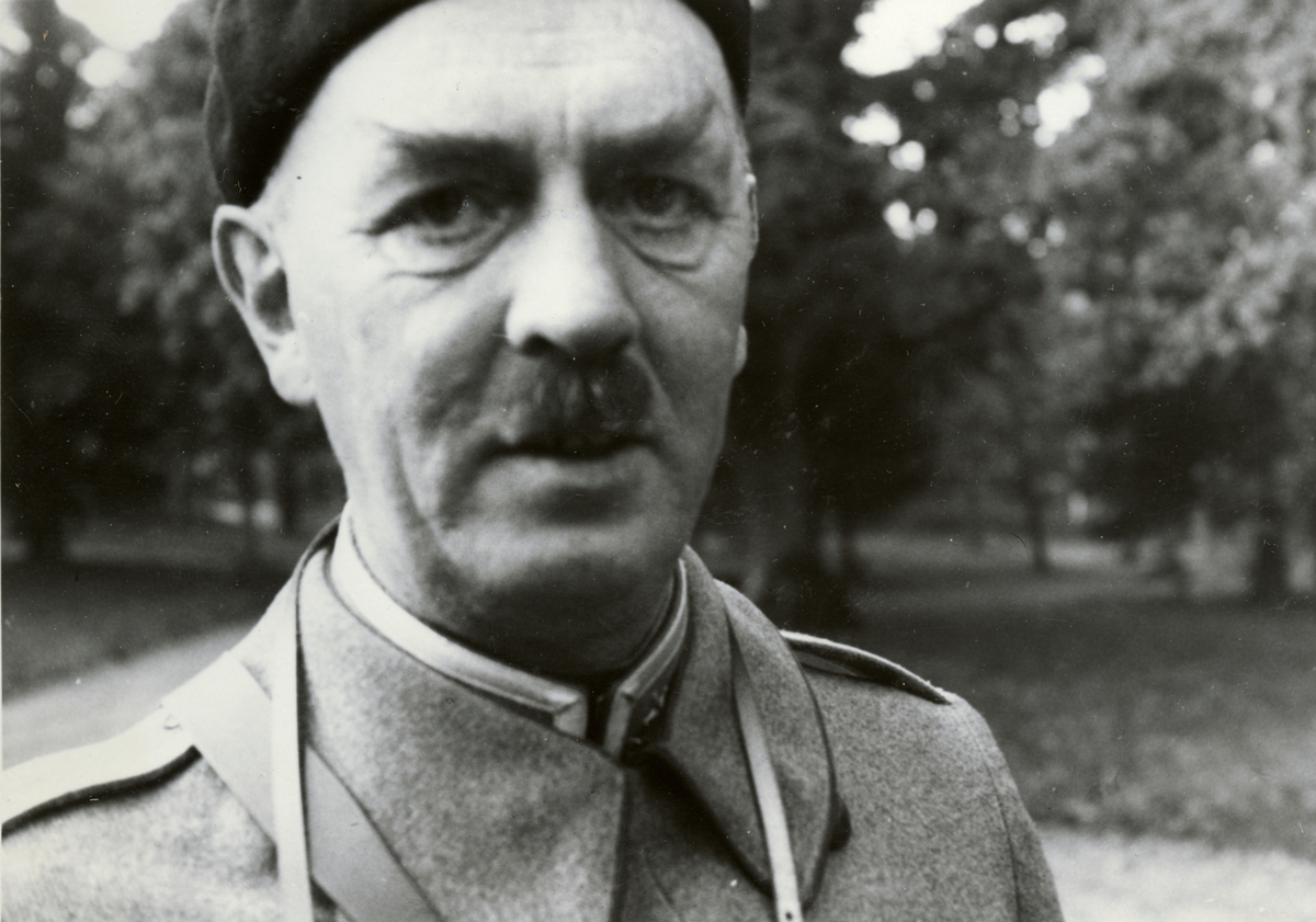 Text i fotoalbum: "1935. Okt. Skånemanövern. Två fältintendenter; Granlund, I 16 och Humble, I 17, vid Livsm.magasinet i Ystad".