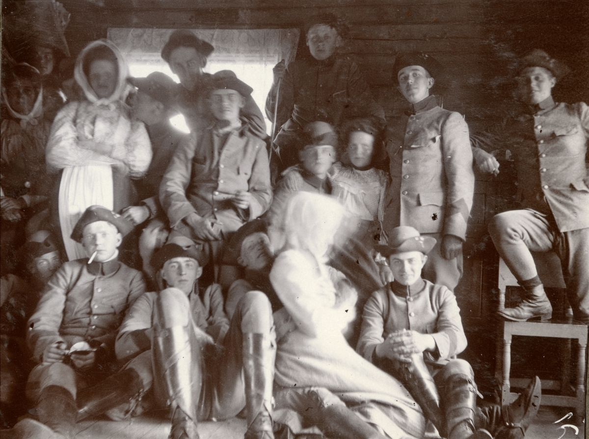 Text i fotoalbum: "Fälttjänstöfningarna vid Östersund. Klackarna i taket! När man kommer i kvarter på kvällen".