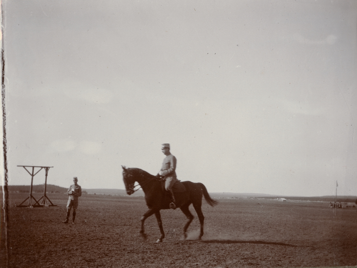 Titel: Text i fotoalbum: "Löjtn. Ljungqvist i prisridning".