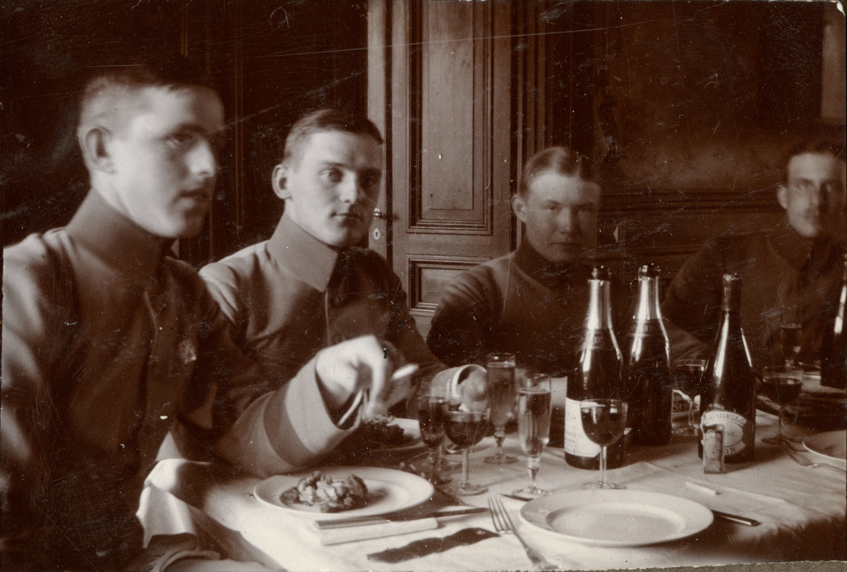 Titel: Text i fotoalbum: "Lif- och hustrupperna fira födelsdag".
