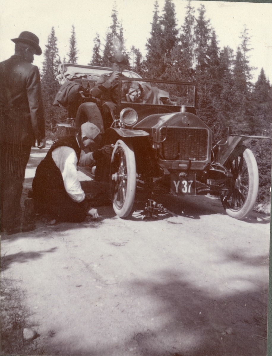 Fordonet på bilden med registreringsnummer Y37 är en Darracq 1911 och registreraded på Adolf Fredrik Johansson i Umeå den 2/6 1911.