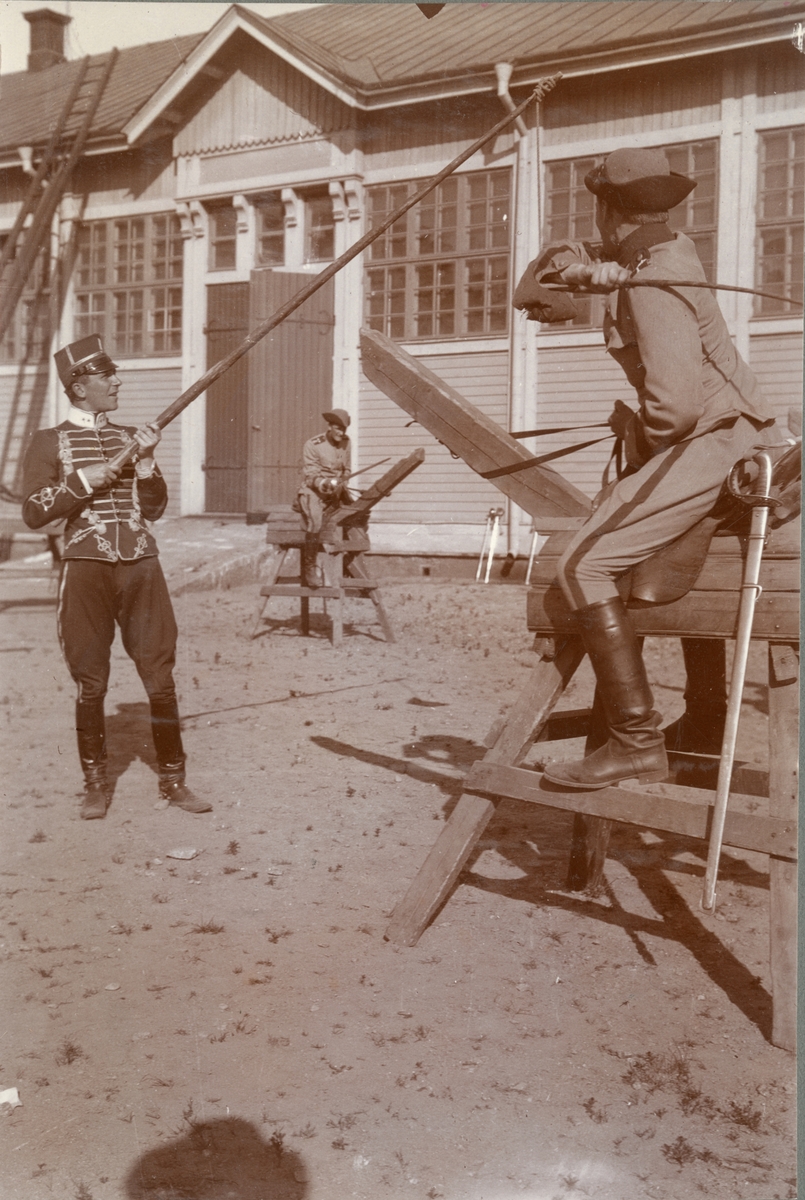 Titel: Text i fotoalbum: "Harry instruerar o Grumme anstränger sig ".