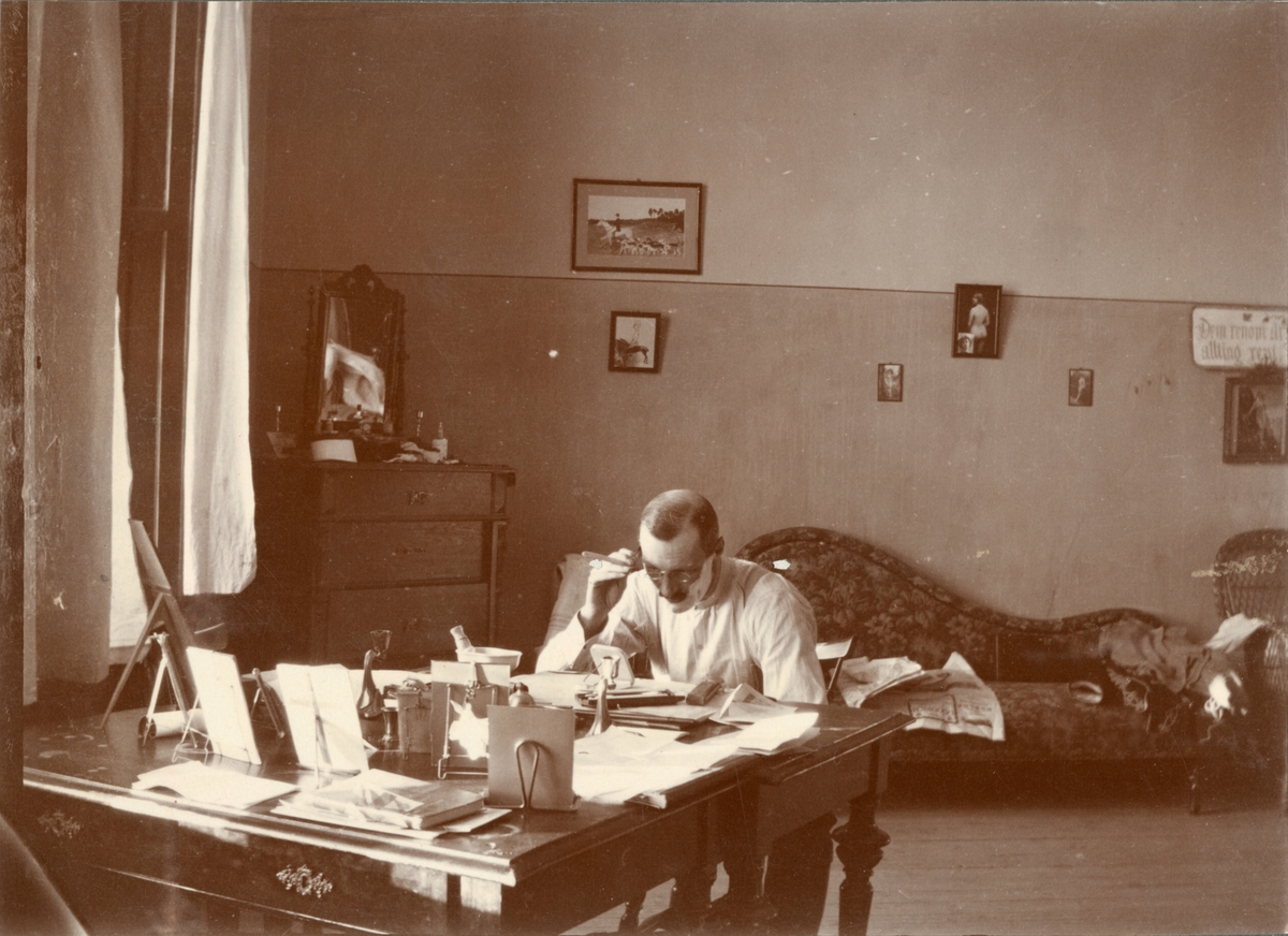 Titel: Text i fotoalbum: "Underofficersskolan 1911-1912 Umeå-Eksjö. Alla kvinnor i stan drömmer han nog f.n".