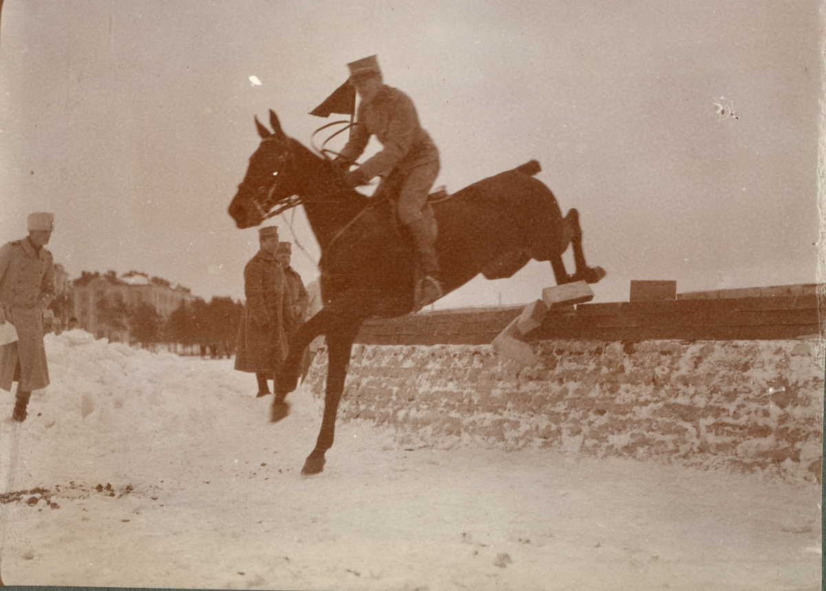 Titel: Text i fotoalbum: "Underofficersskolan 1911-1912 Umeå-Eksjö". Ridövning.