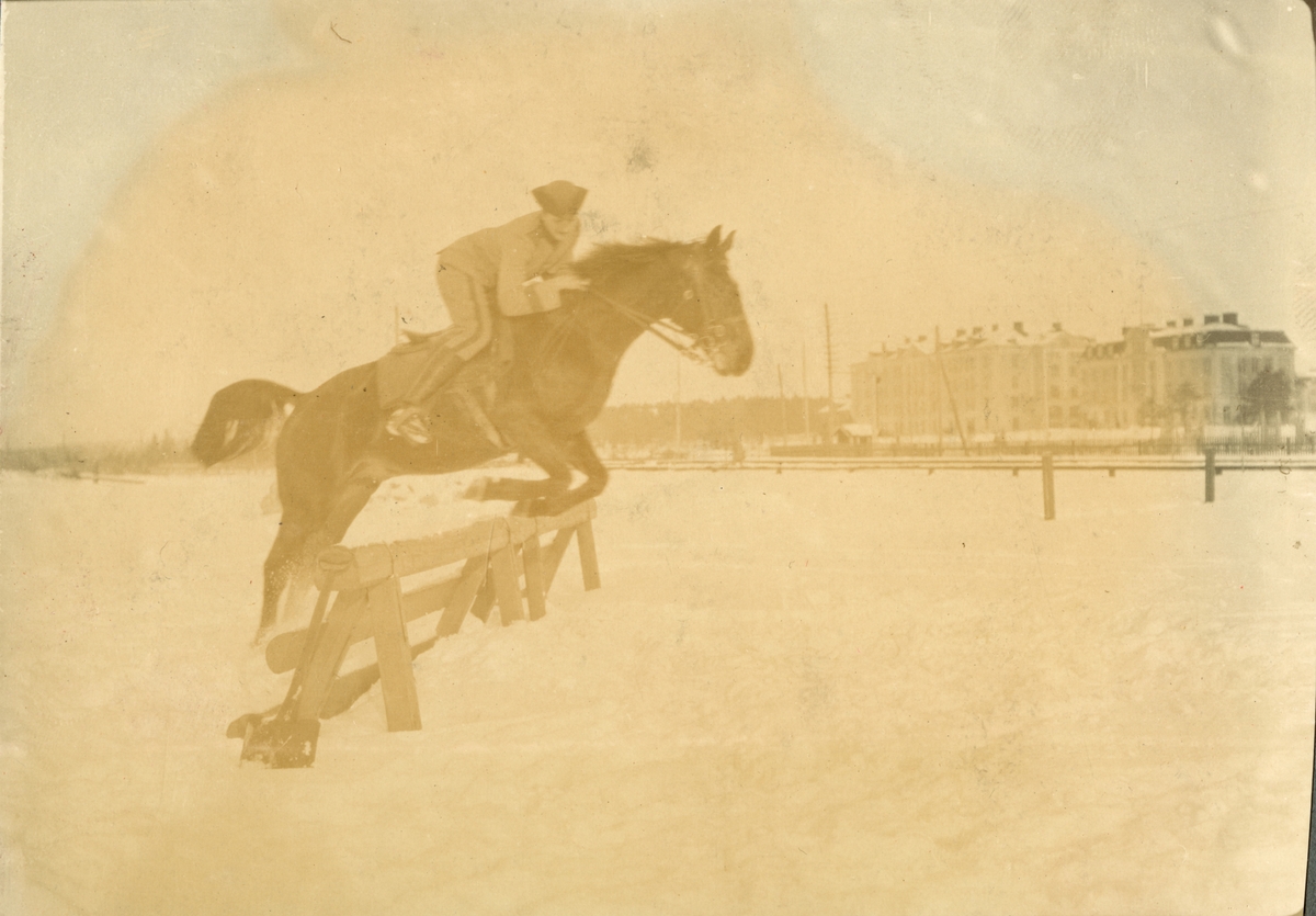 Titel: Text i fotoalbum: "Underofficersskolan 1911-1912 Umeå-Eksjö". Ridövning.