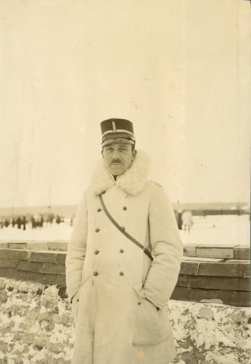 Titel: Text i fotoalbum: "Underofficersskolan 1911-1912 Umeå-Eksjö. Harry da´n efter lördagskvällen".
