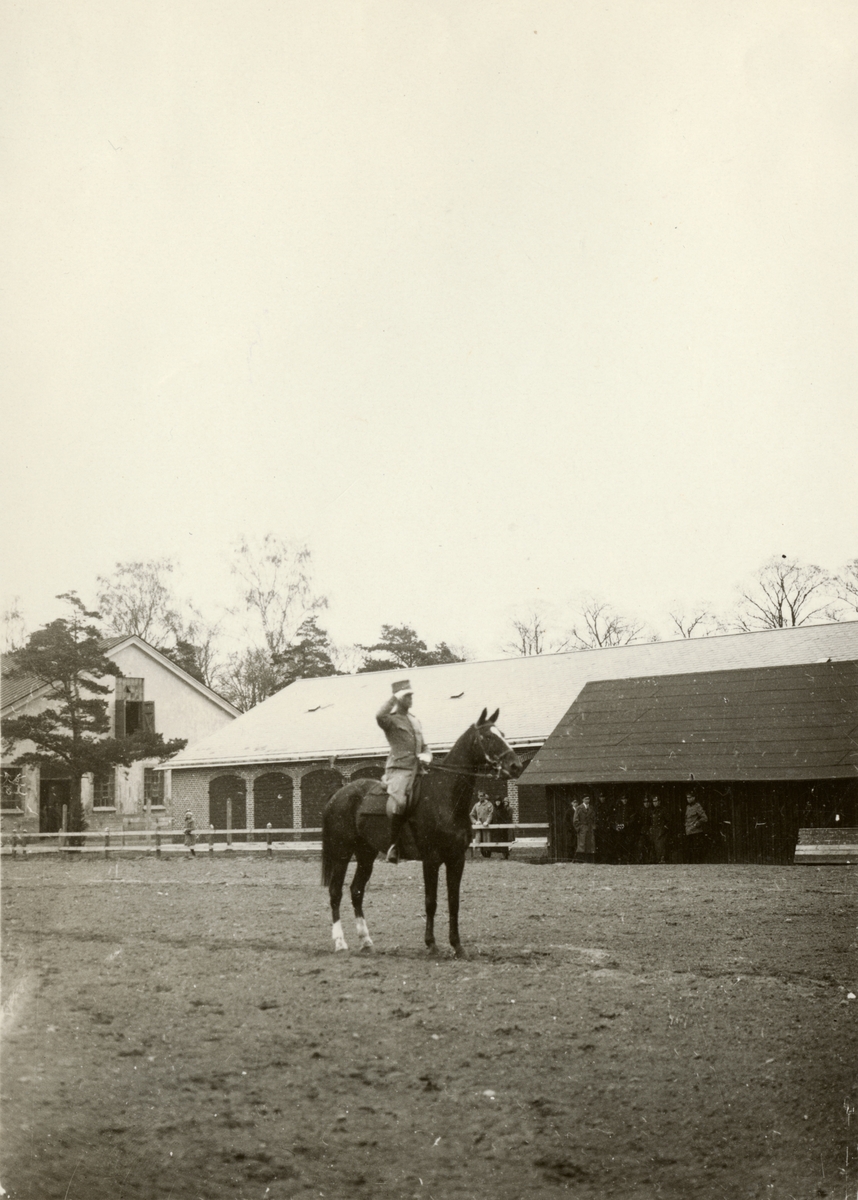 Text i fotoalbum: "Officersaspirantskolan 1925-1926. Kapten Dyrsch på Santa Lucia efter genomfört prisridningsprogram".