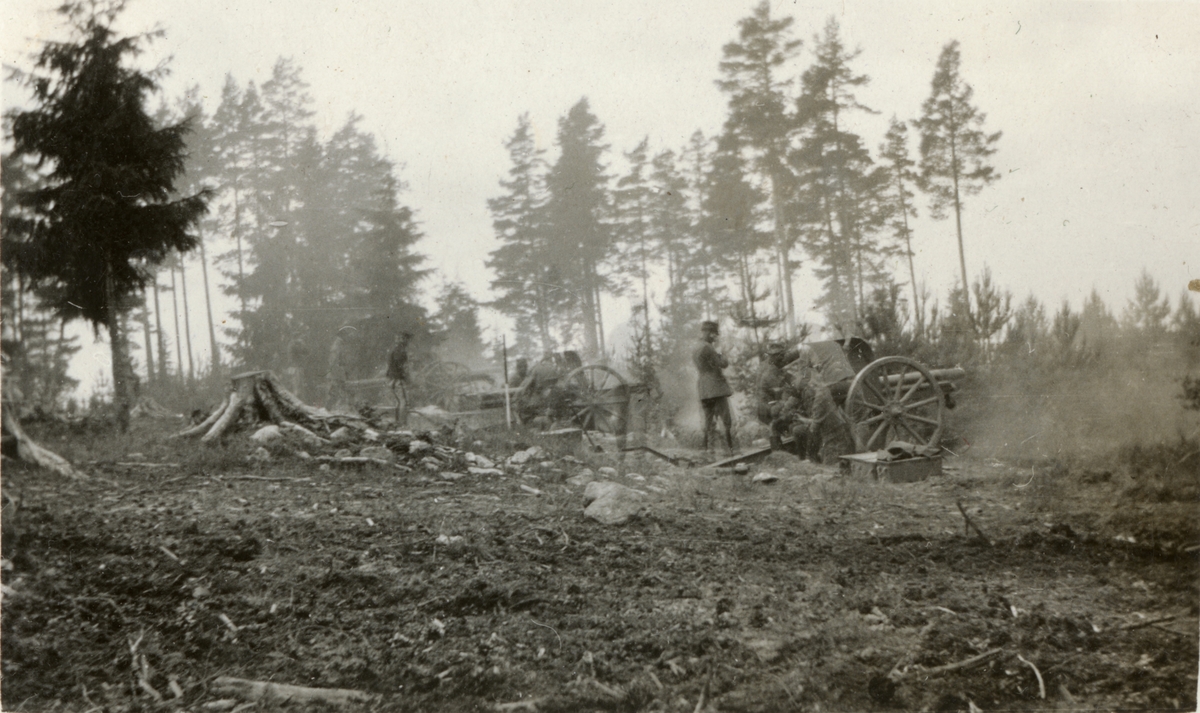 Text i fotoalbum: "Krigsskolan 10 okt 1926 - 31 dec 1927. Skillingaryd - Varberg, sommaren 1927. 7 cm batt i eldgivning".