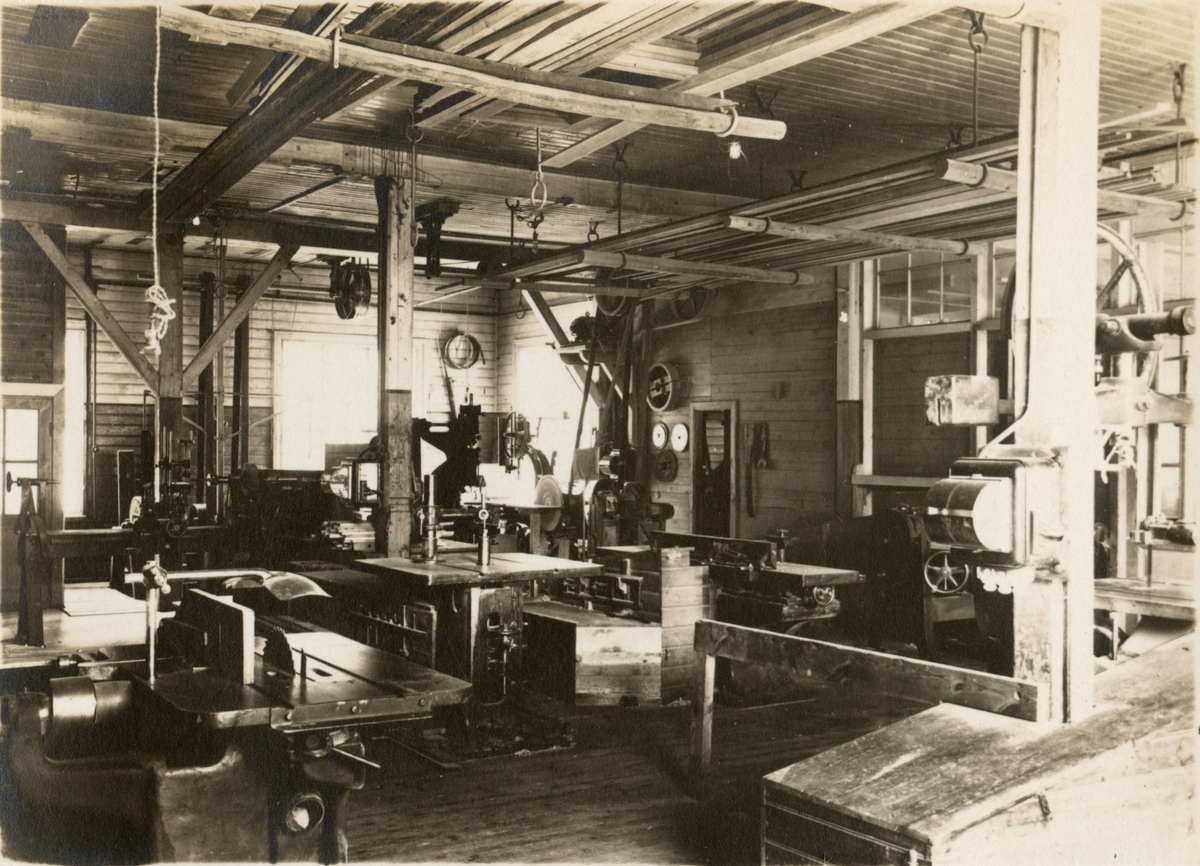 Titel: Text i fotoalbum: "Fänrikstiden i Karlsborg 20/2-16/4 1928. Snickeriverkstaden".