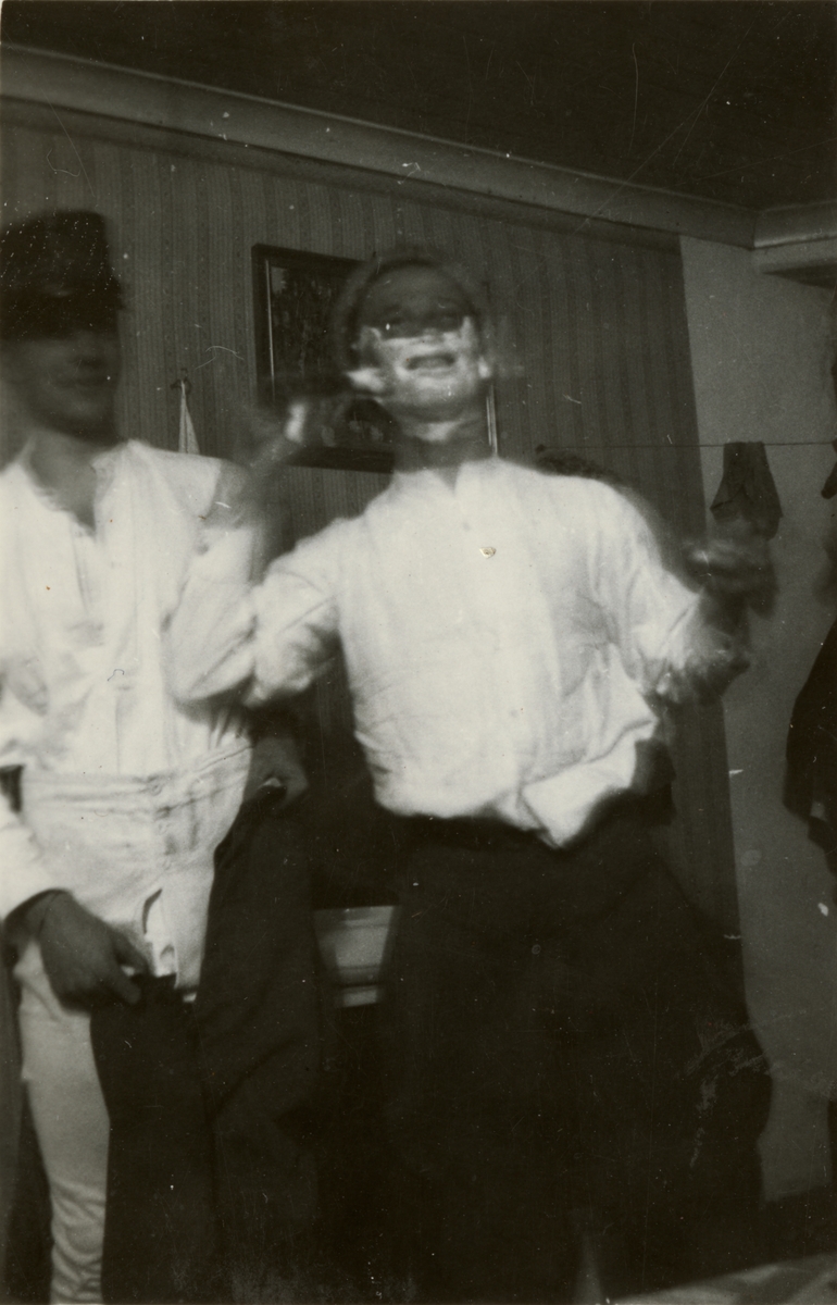 Text i fotoalbum: "Vinterövningarna 1930. Morgontoalett".