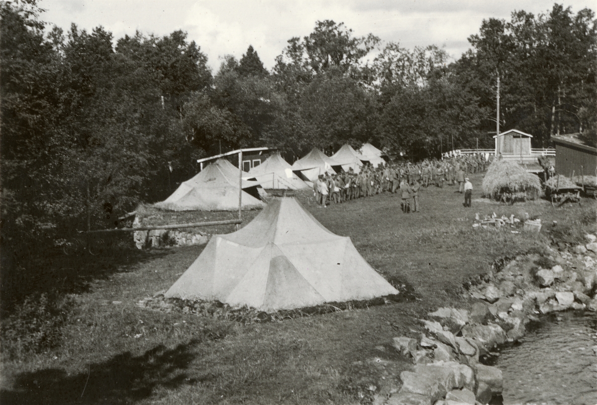 Text i fotoalbum: "Efter semesterns slut for jag 24. juli till Laxön, som alltid utövar en ljusning även på pojkarna. De får här reda sig utan civilisationens bekvämligheter".