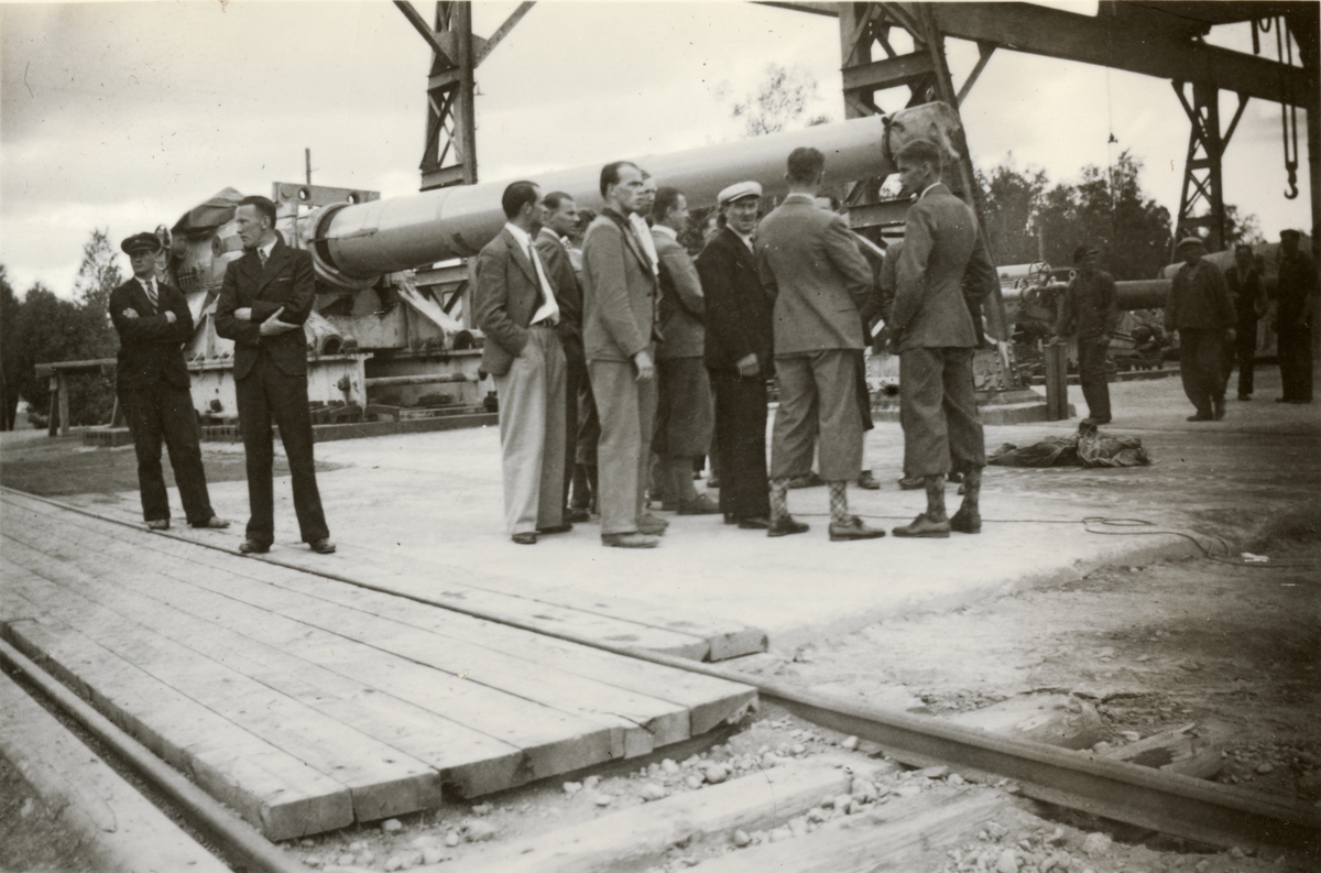 Text i fotoalbum: "Under sprängkursen besökte vi en hel dag Bofors och dess skjutfält".