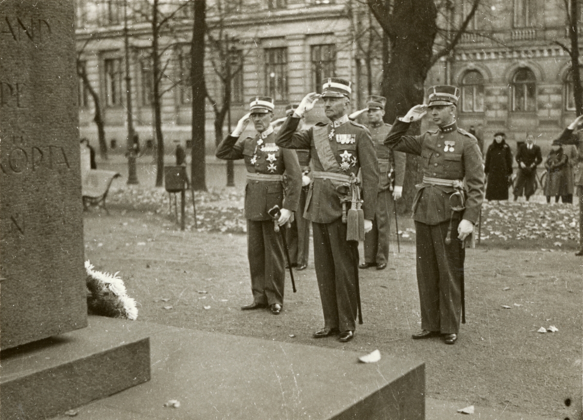 Titel: Text i fotoalbum: "Uppvaktning vid hjältegravarna i Helsingfors".