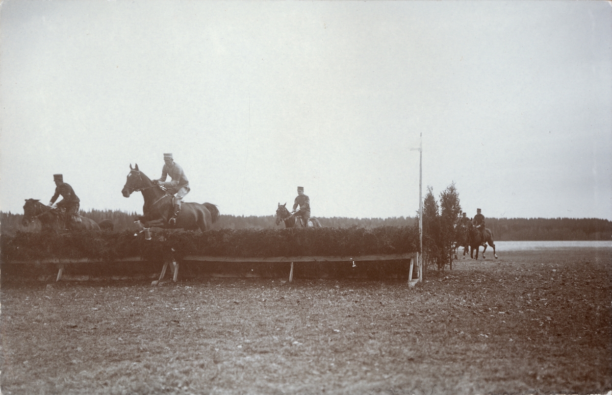 Titel: Text i fotoalbum: "Första löpningen. Upplopshäcken".