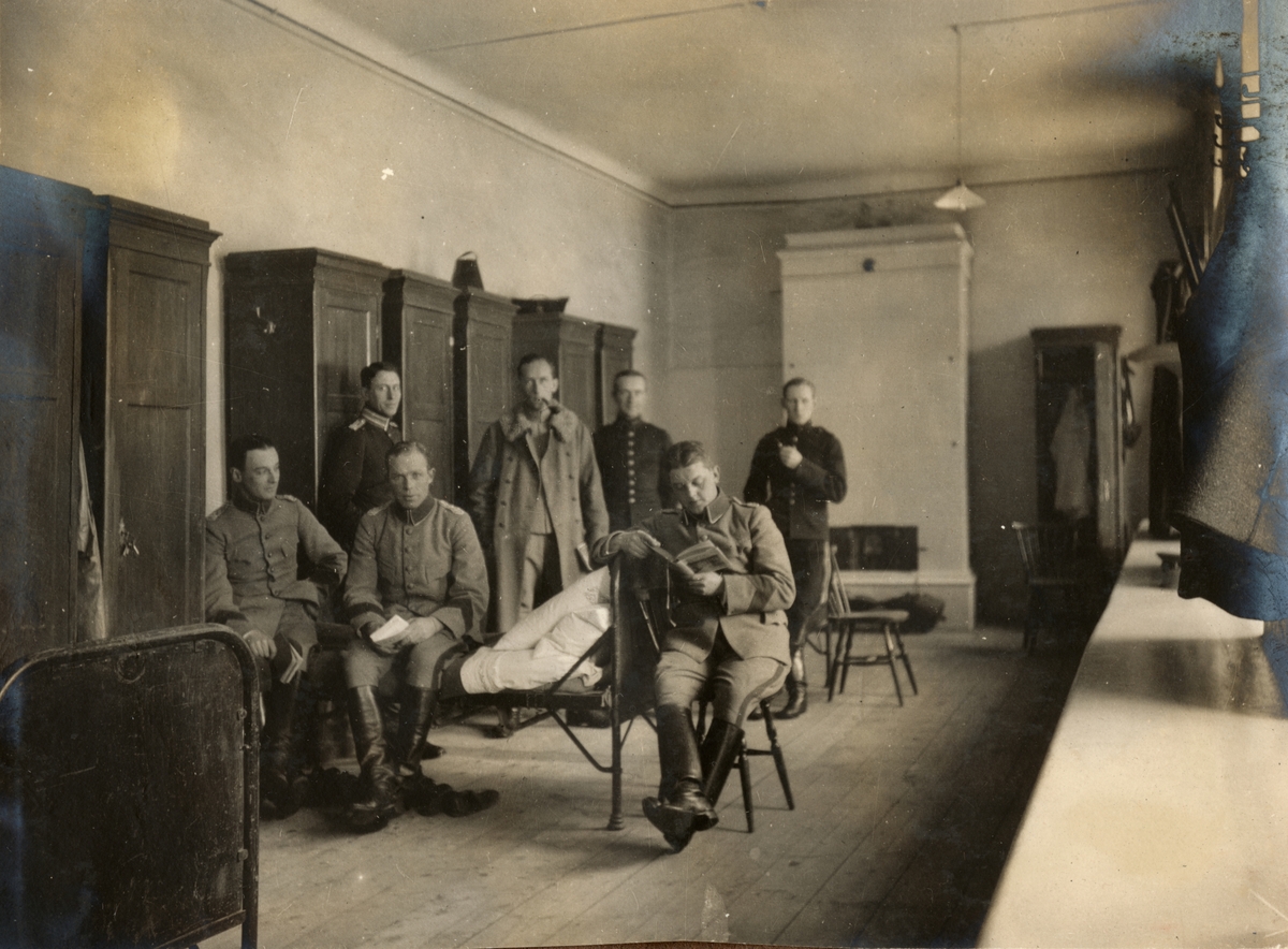 Titel: Text i fotoalbum: "Förbindelsekursen 1920". Soldater i logementet.