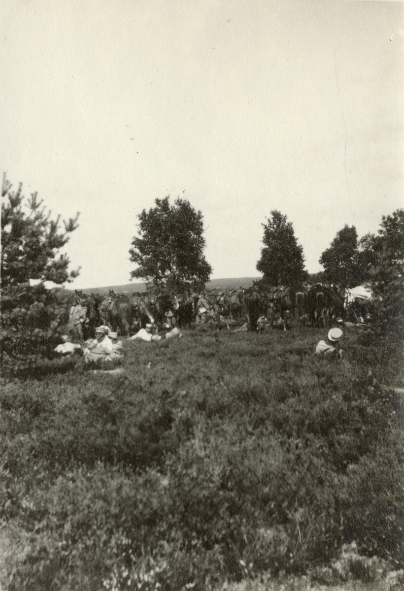Titel: Text i fotoalbum: "Förbindelsekursen 1920". Soldater på övningsplats.